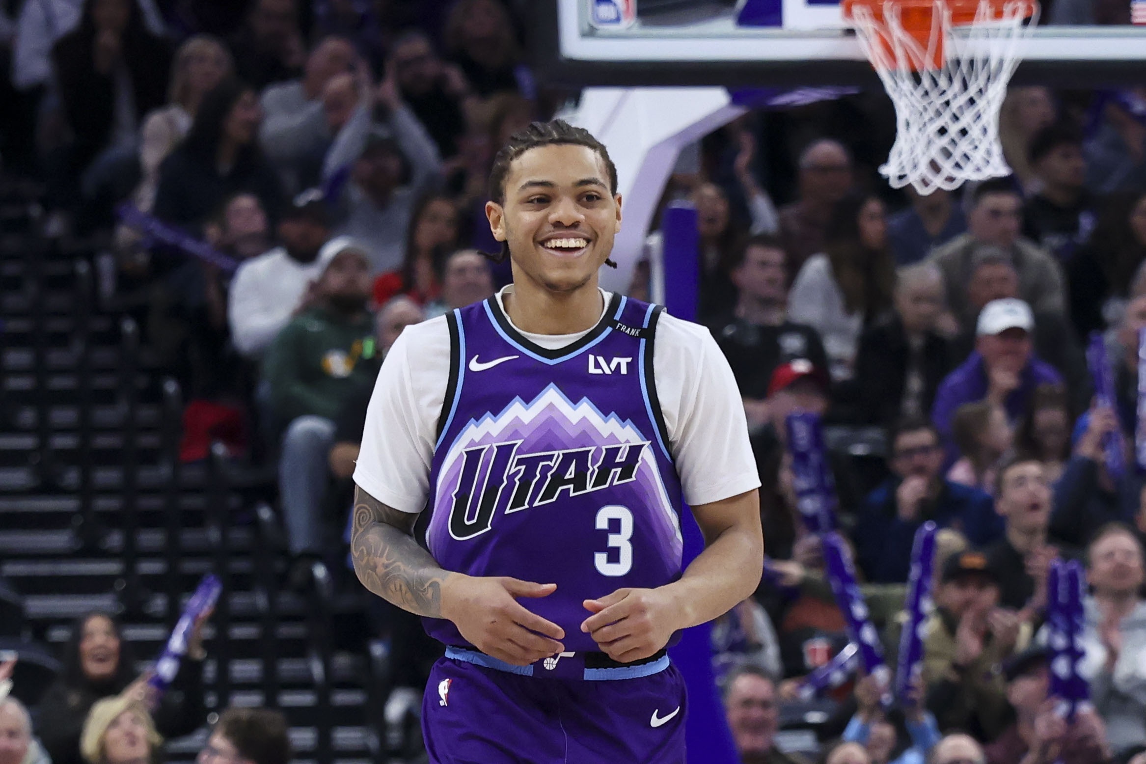 2025年12月1日,爵士101-129火箭,基昂特·乔治出战19分钟,6中0,三分1中0,0分1篮板2助攻1盖帽8失误。